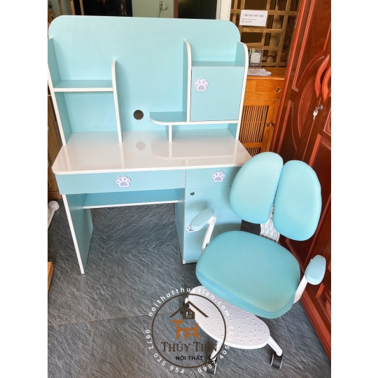 Bàn học được làm từ gỗ MDF lõi xanh chống ẩm, bề mặt phủ Melamine chống trầy xước, dễ lau chùi, an toàn cho trẻ nhỏ.