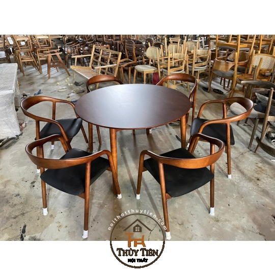 Bộ bàn ăn tròn ghế gỗ ash cao cấp sơn màu óc chó