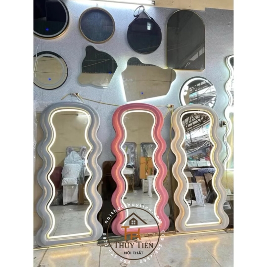 Gương Lượn Sóng Bọc Nỉ Đầu Tròn Nịnh Dáng, Hàng Nỉ Dày Dặn Decor Phòng