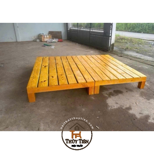 Giường pallet gỗ thông đã sơn xịt chống mối mọt