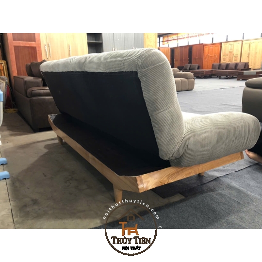 ✨ Sofa giường vải nhung gân – chân gỗ tự nhiên hiện đại