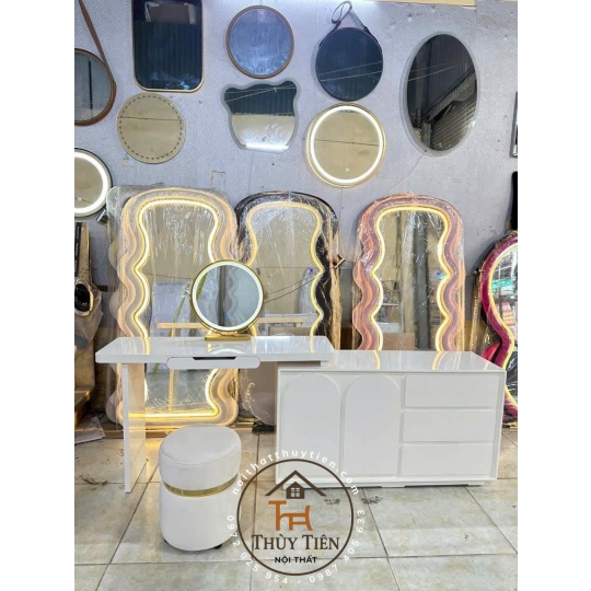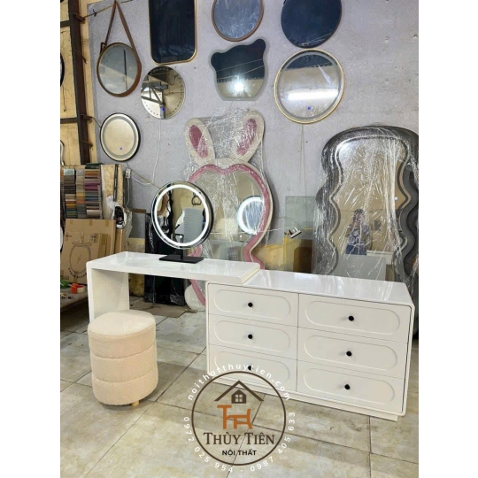 Xưởng e vẫn nhận làm các mẫu bàn trang điểm , bàn làm việc , tủ kệ decol theo yêu cầu nhé Thích màu nào thợ e sơn màu đó