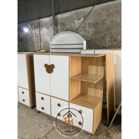 Tủ em bé chất liệu gỗ công nghiệp đủ mẫu đủ màu xưởng e nhận làm theo yêu cầu ạ