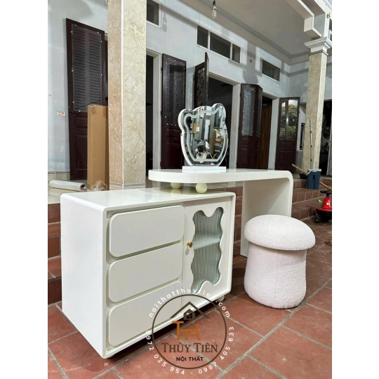 Xưởng e vẫn nhận làm các mẫu bàn trang điểm , bàn làm việc , tủ kệ decol theo yêu cầu nhé Thích màu nào thợ e sơn màu đó